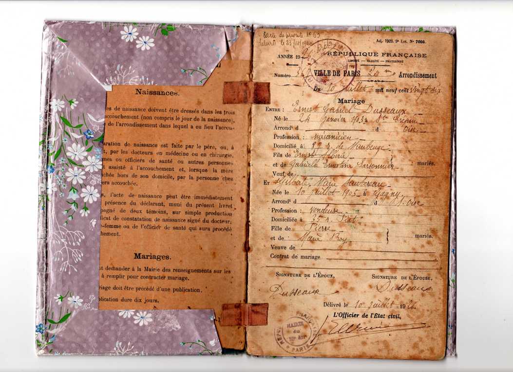 Mariage : 10 juillet 1926 à Paris 20ème 75120