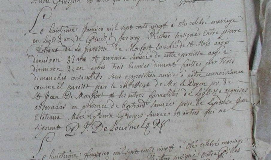 Mariage : 8 janvier 1720 à Gévezé 35850