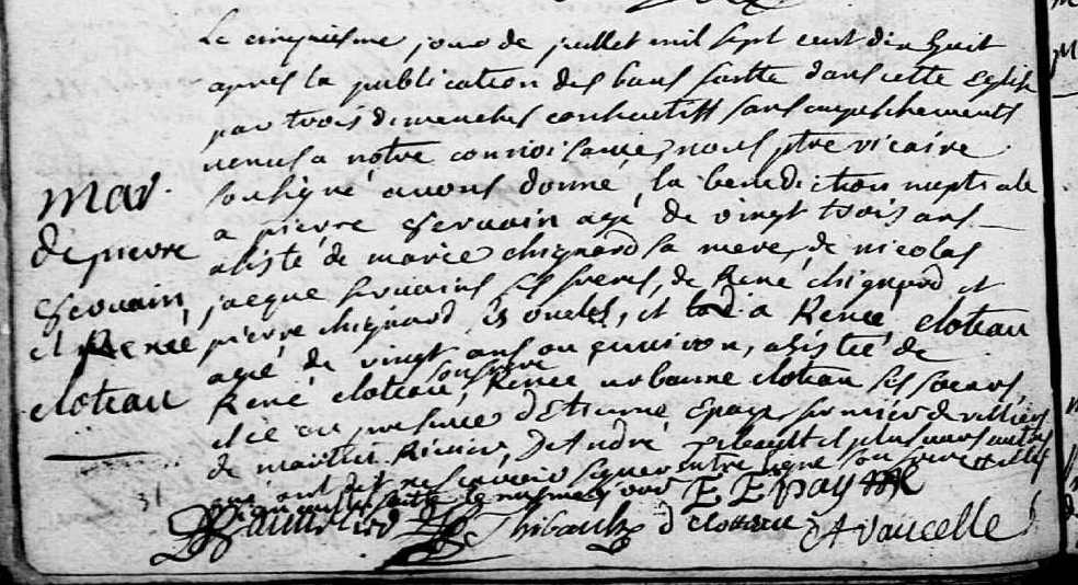 Mère : CLOTTEAU Renée ou Marie ( 1699 - 1741 )