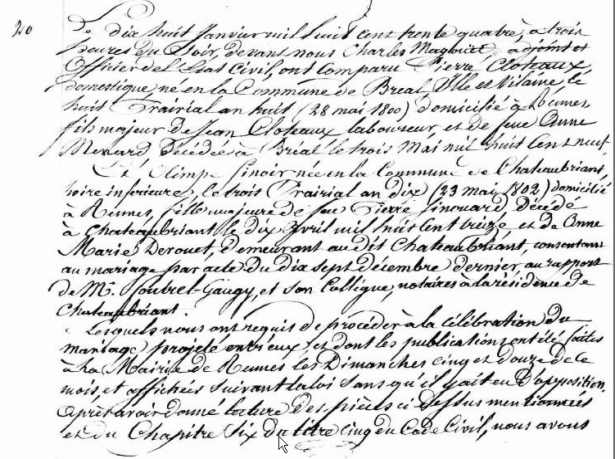 Naissance : 3 prairial an X à Châteaubriant 44110