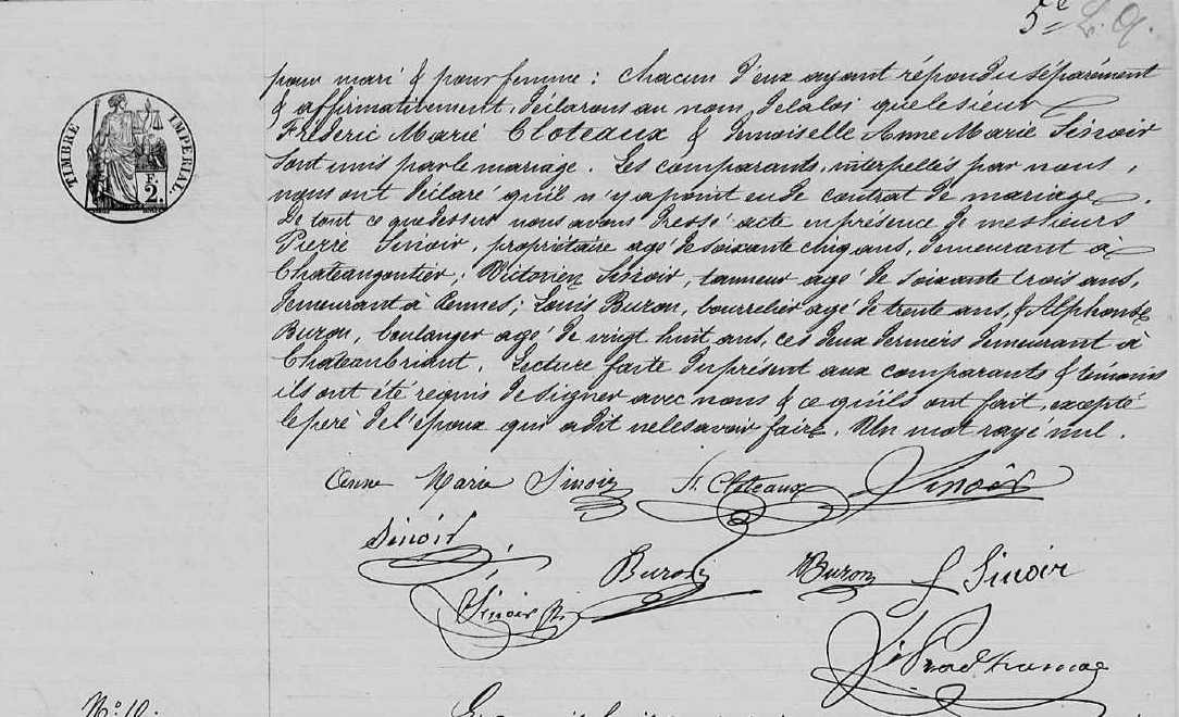 Union : CLOTEAUX Frédéric Marie ( 1835 - > 1875 )
