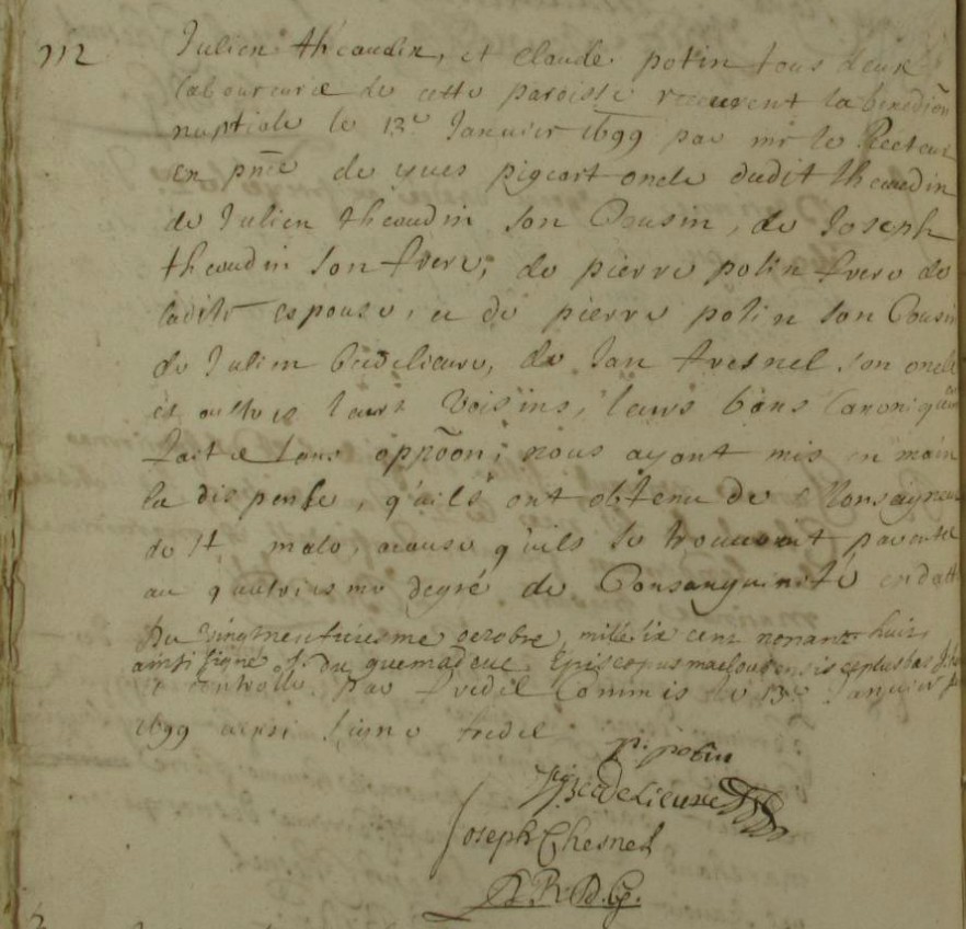 Mariage religieux : 13 janvier 1699 à Guichen 35580