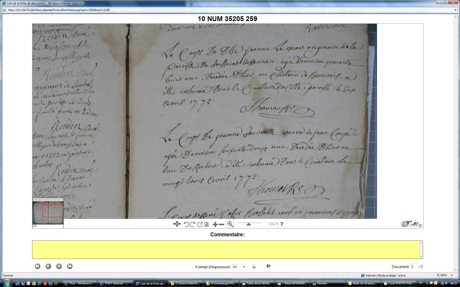Naissance : calculée 1700 Décès : 23 avril 1772 à Noyal-Sous-Bazouges 35560 Rocher