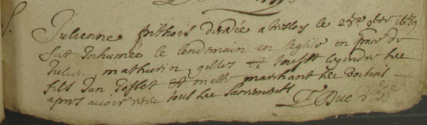 Inhumation : après 7 juillet 1695 à Guichen 35580