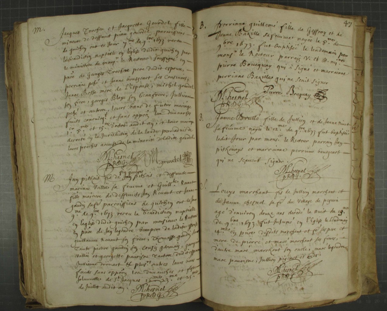 1673 M GOURDEL Jacquette avec TROCHEU J. OuiBaptême : 30 décembre 1642 à Guichen 35580
