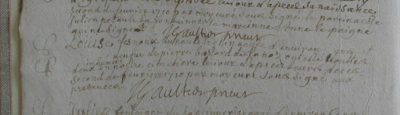 Baptême : vers 1630 Saint Victor sur Loire Inhumation : après 1701 Saint Victor sur Loire