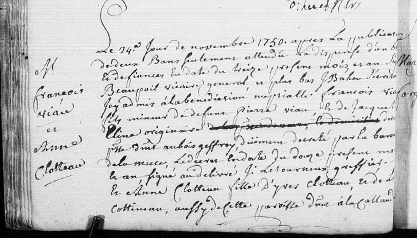 Mariage : 24 novembre 1750 à Les Touches 44390