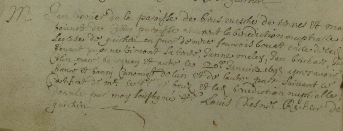 1695 M VENIER Jean de Bruz avec BOUVET Marie de Guichen. Non