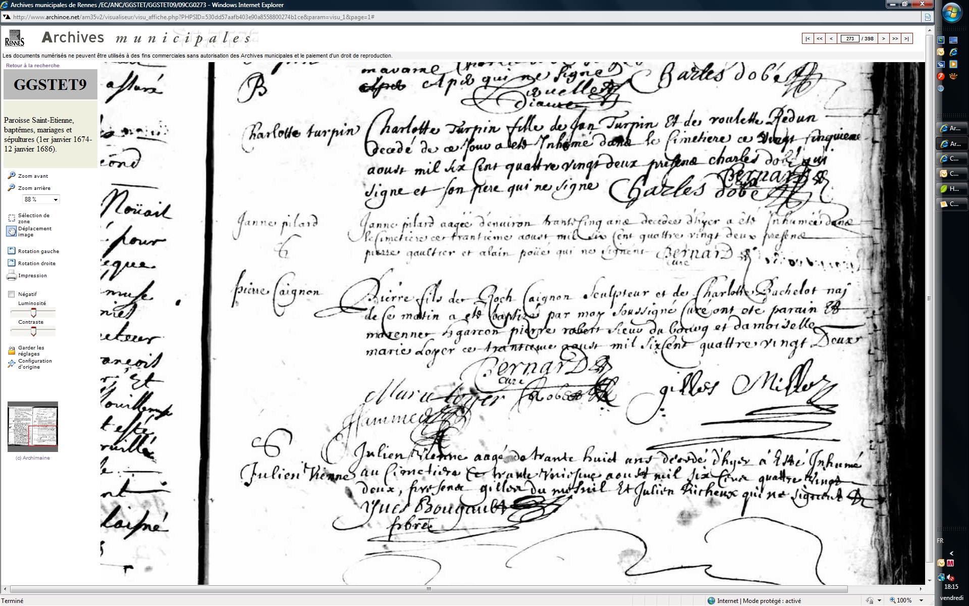 recherche dans GGSTGE26 jusque page 166Décès : après janvier 1673 à Rennes 35000