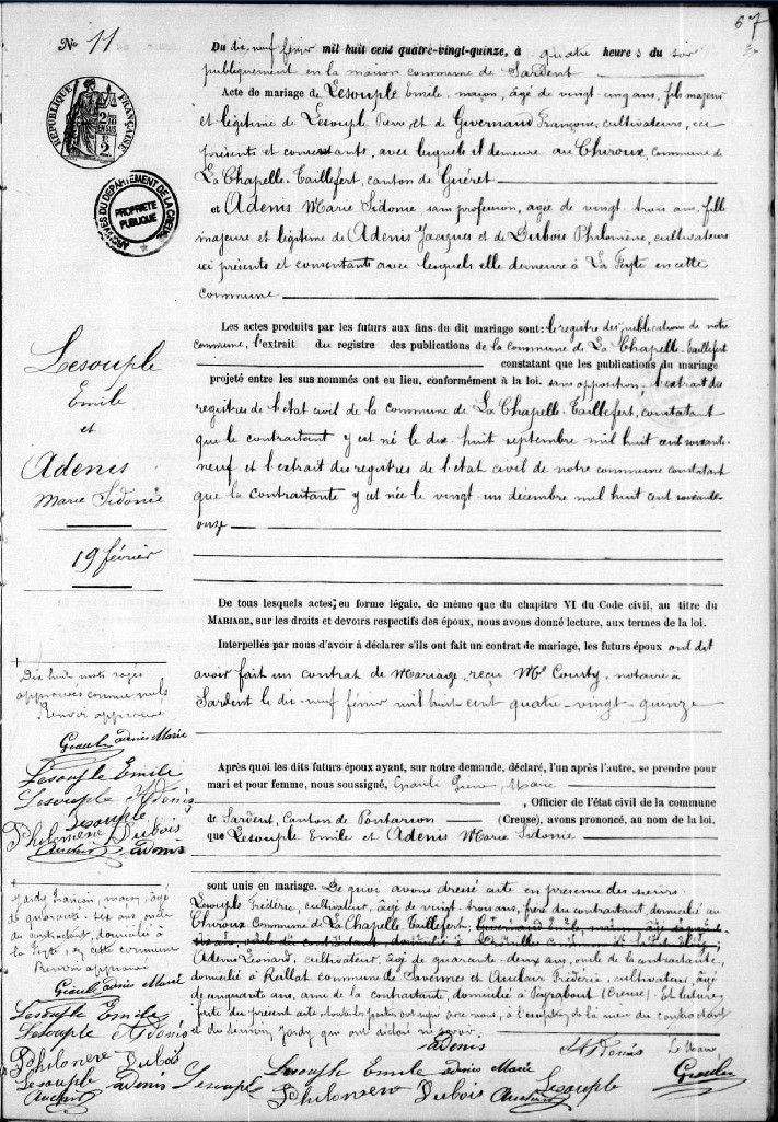 Témoin :LESOUPLE Frédéric ( 1872 - > 1895 )
