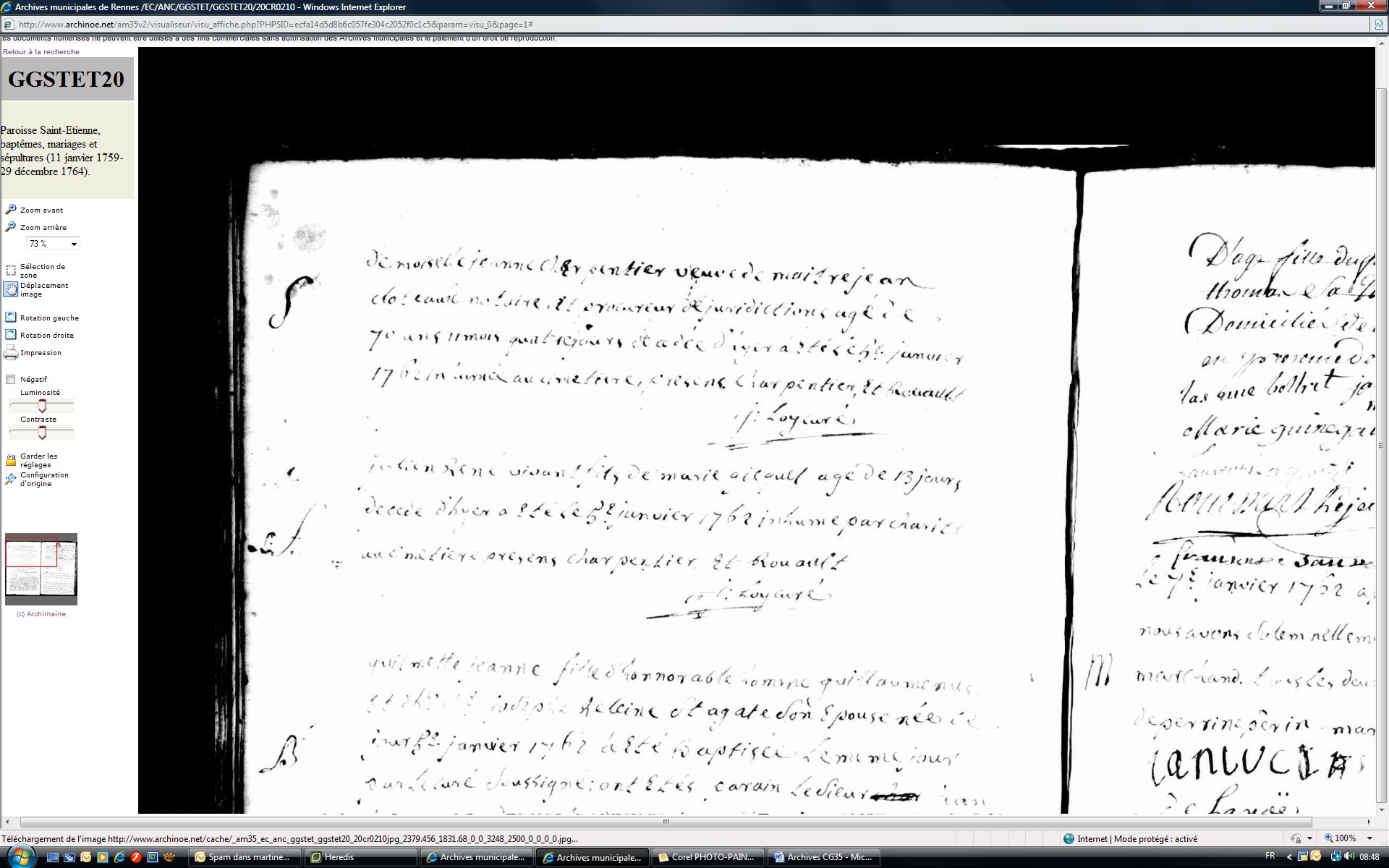 voir CHERPANTIER Jeanne X CLOTEAUX Jean 1728 Rennes Saint Aubin tous 2 plus de 25 ans