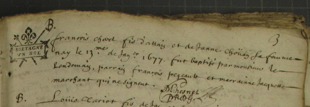 Père : CHEREL Alain ( < 1643 - <> 1706 & 1721 )