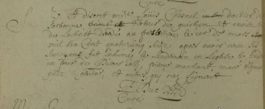 Prêtre et Docteur en Sorbonne en mai 1665Décès : 1er mars 1696 à Guichen 35580 le Presbytère