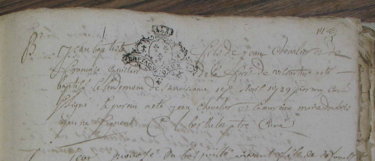 Naissance : 16 avril 1729 à Bazouges-La-Pérouse 35560 La foret de Vliortier