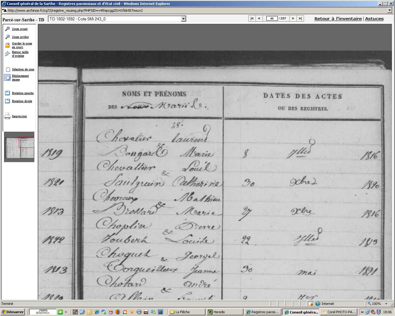 Naissance : 11 novembre 1806 à Thorée-Les-Pins 72800 Décès :