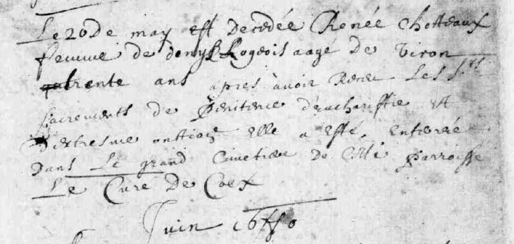 Naissance : calculée 1650 Décès : 20 mai 1680 à Coëx 85220