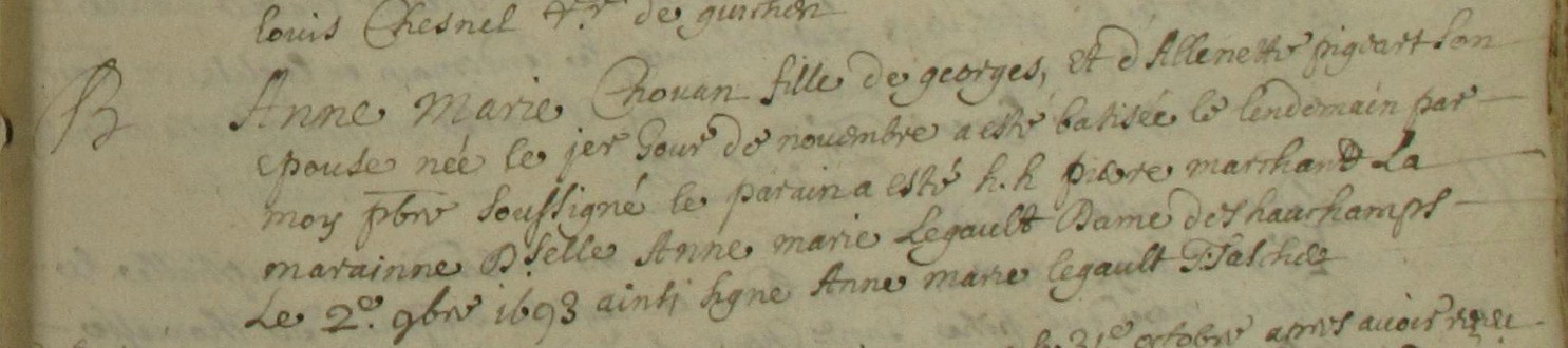 - marraine Anne Marie LEGAULT Dame des Hauts Champs qui signe