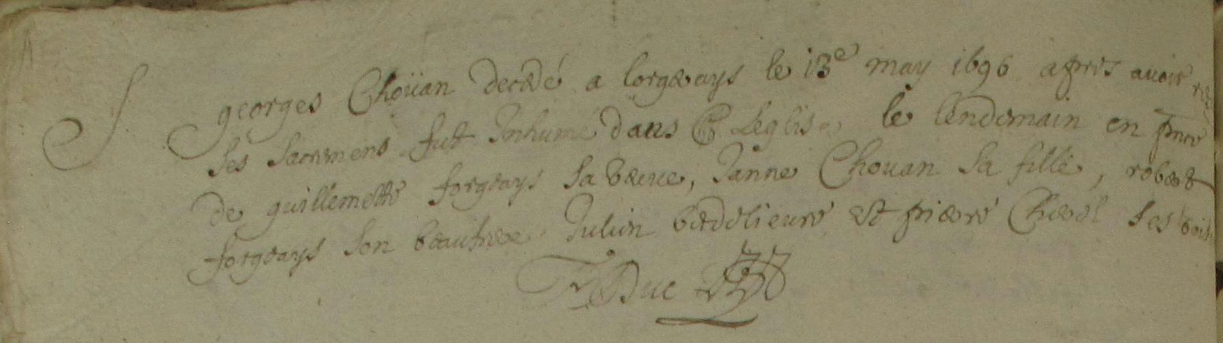 Témoins :CHOUAN Georges ( 1632 - 1689 )