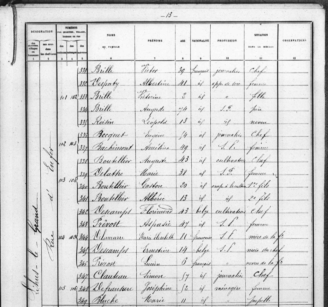 Naissance : 11 juin 1838 à Écly 08300 Domicile : 1896 à Lihus 60360 Rue d'Enfer