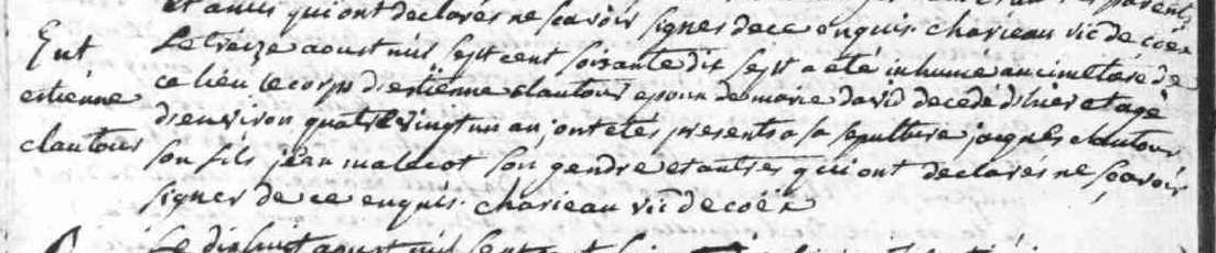 Père : CLAUTOUR Jacques ( < 1738 - <> 1761 & 1784 )
