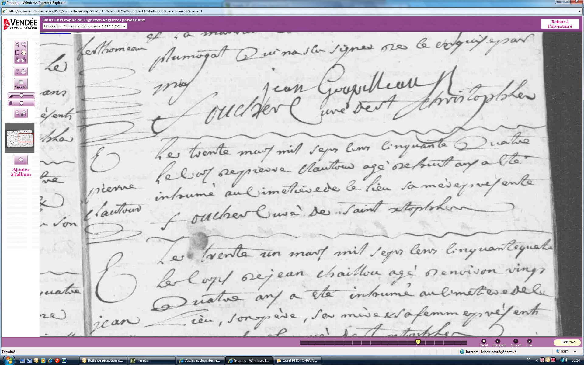 Naissance : calculée 1746 Décès : 30 mai 1754 à Saint-Christophe-Du-Ligneron 85670