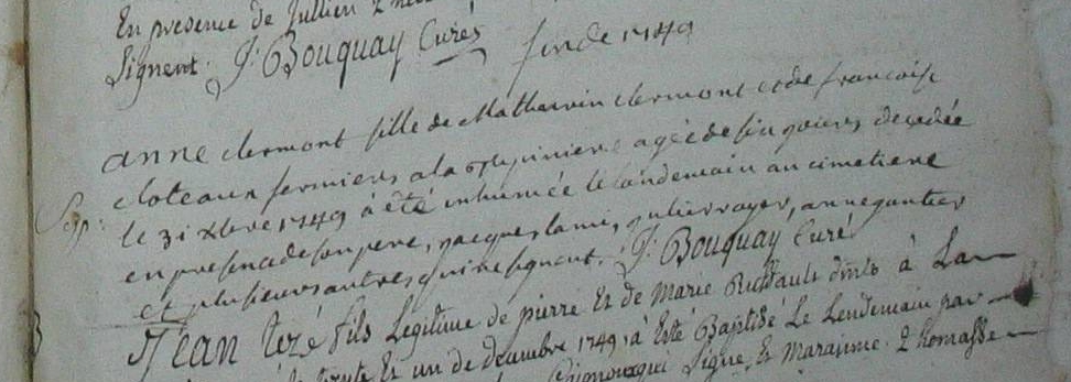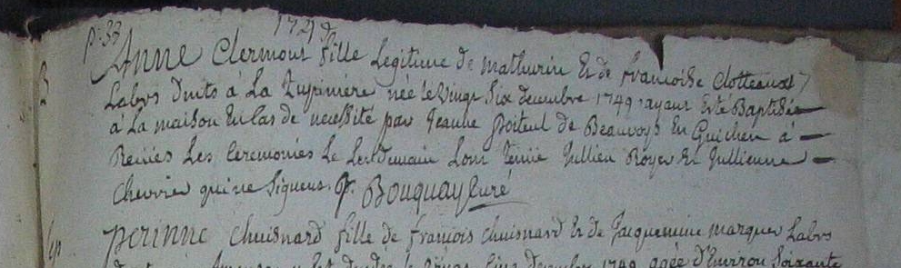 Père : CLERMONT Mathurin ( ~ 1708 - > 1753 )