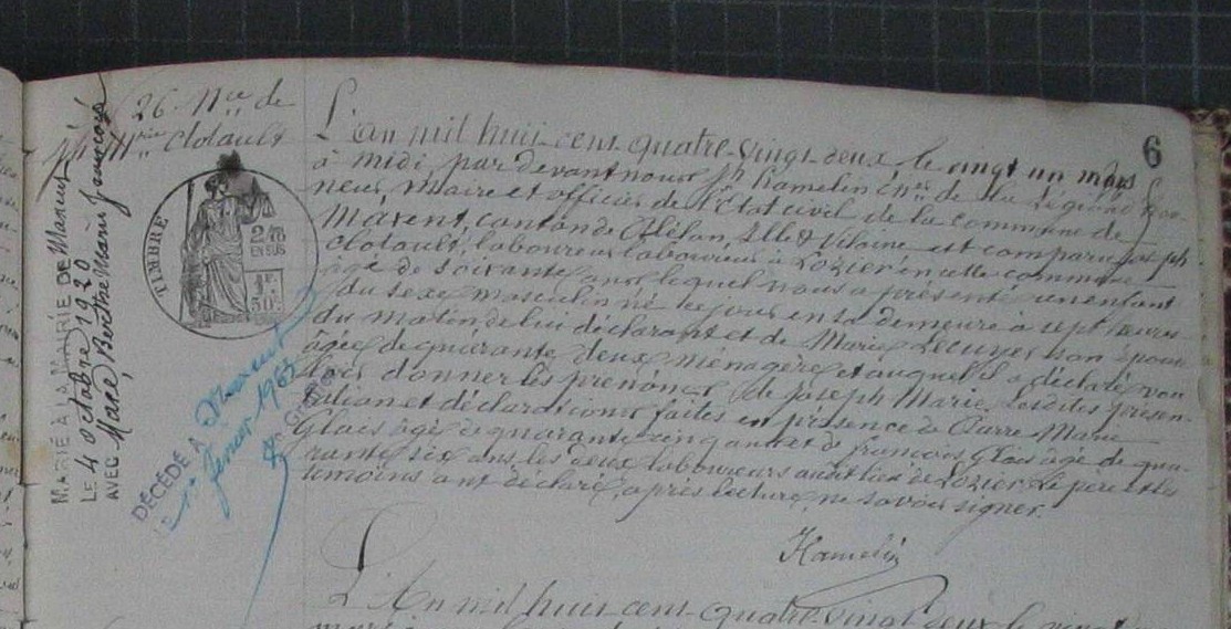 Père : CLOTEAULT Maxent Joseph Marie ( 1866 - > 1907 )