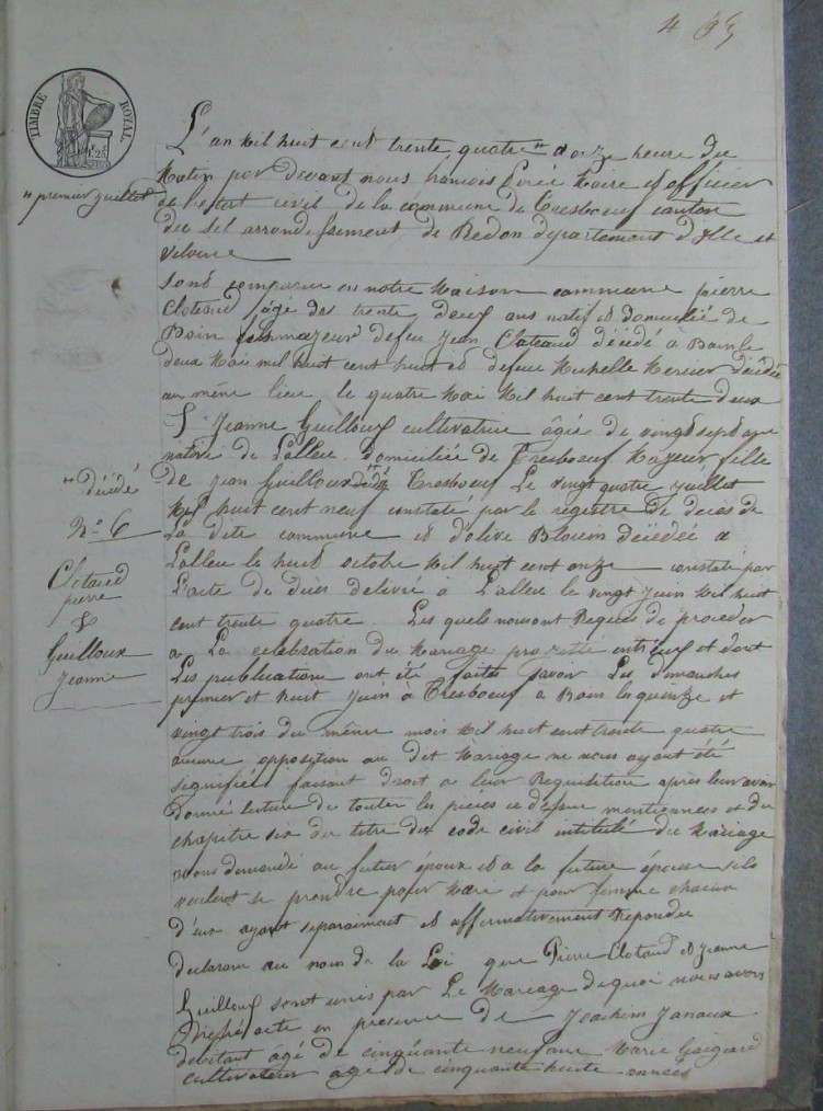 Mariage : 1er juillet 1834 à Tresboeuf 35320