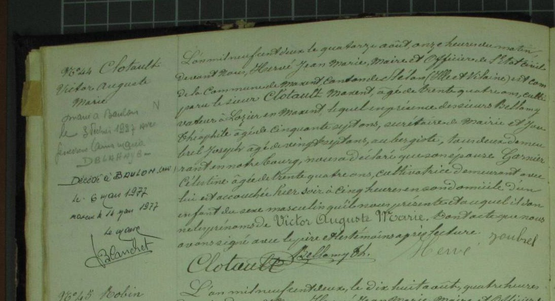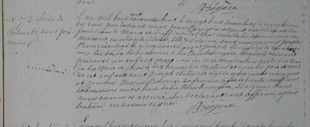 Naissance : 28 décembre 1868 à Maxent 35380 Décès : 28 décembre 1868 à Maxent 35380