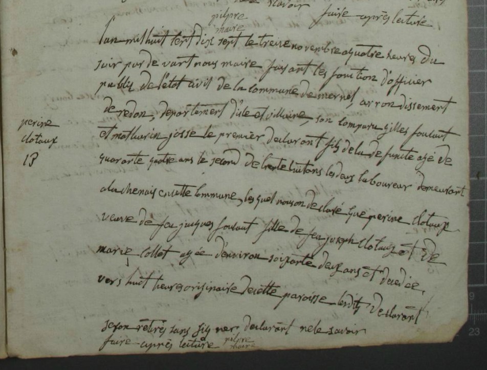 ou CLOTEAUDécès : 13 novembre 1817 à Mernel 35330