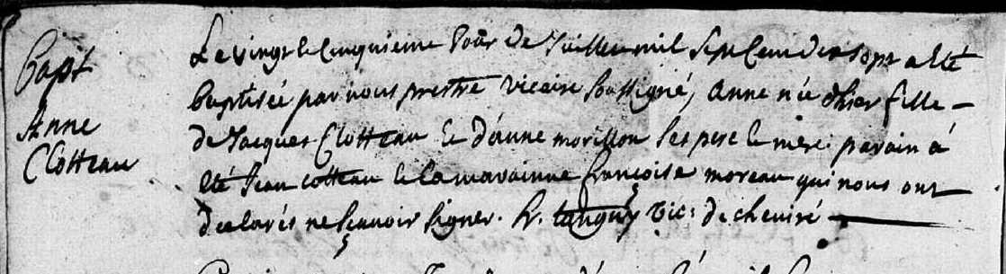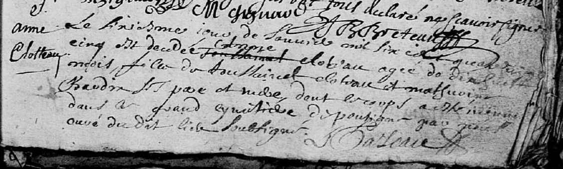 Père : CLOTEAU Toussaint ( ~ 1648 - < 1695 )