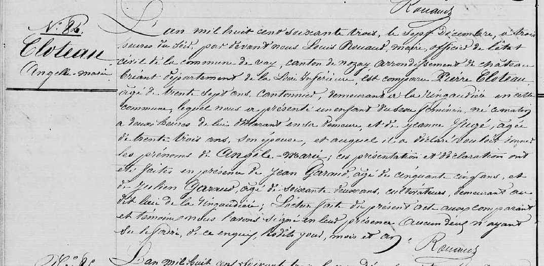 Naissance : 7 décembre 1863 à Vay 44170 La Ringuaudière