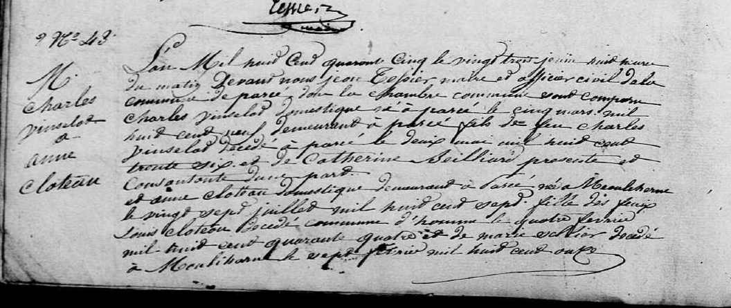 Mariage : 23 juin 1845 à Parçay-Les-Pins 49390