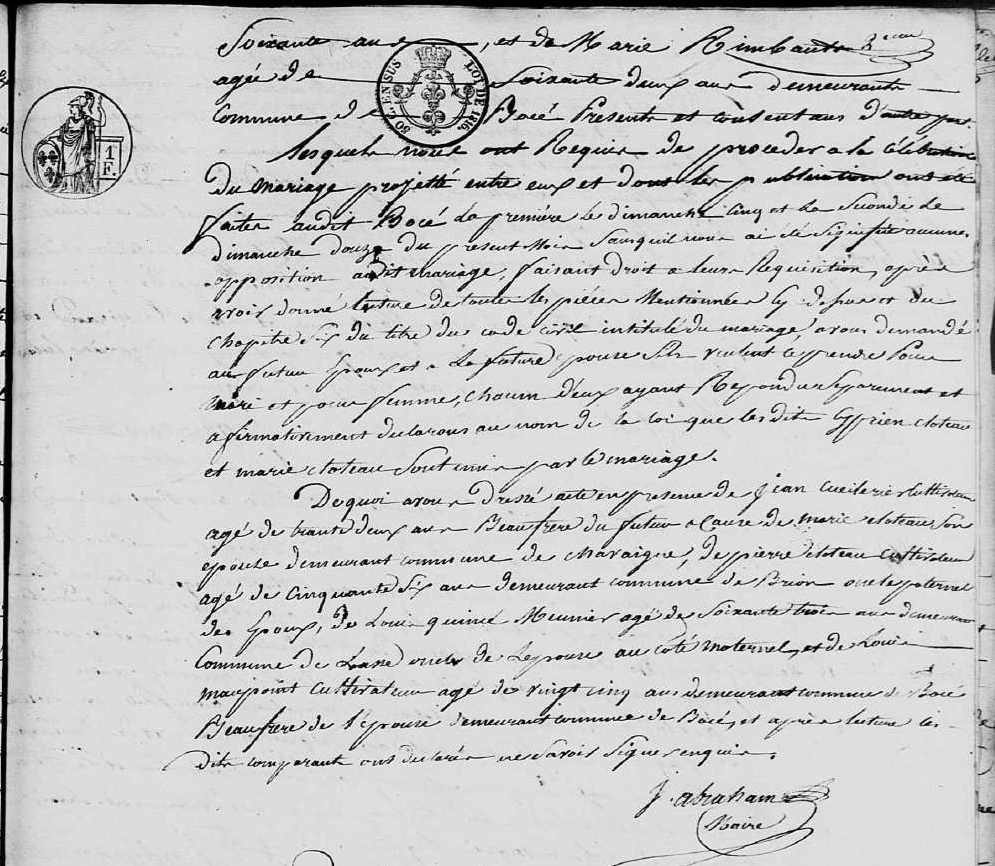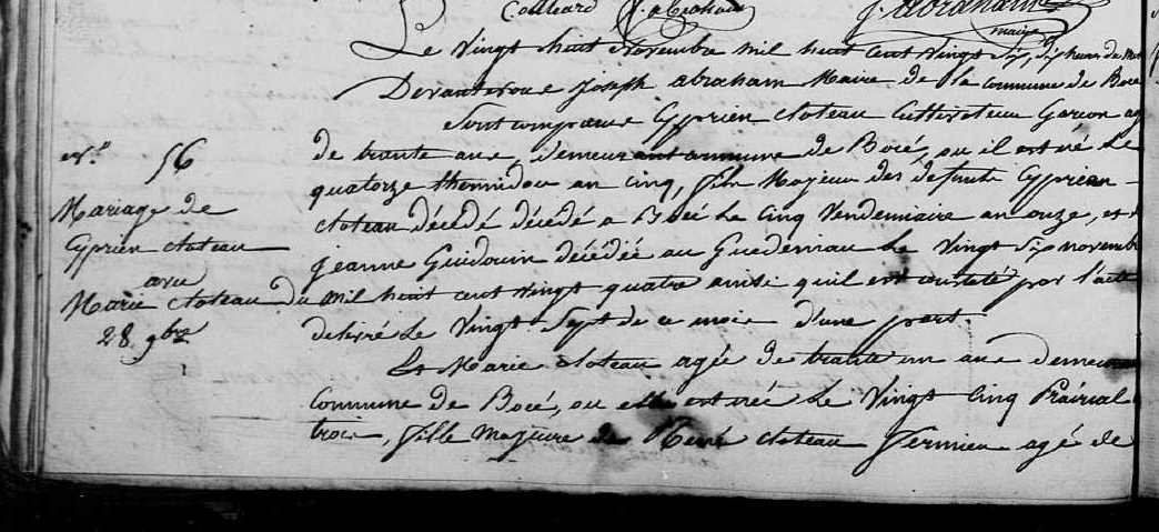 Mariage : 28 novembre 1826 à Bocé 49150