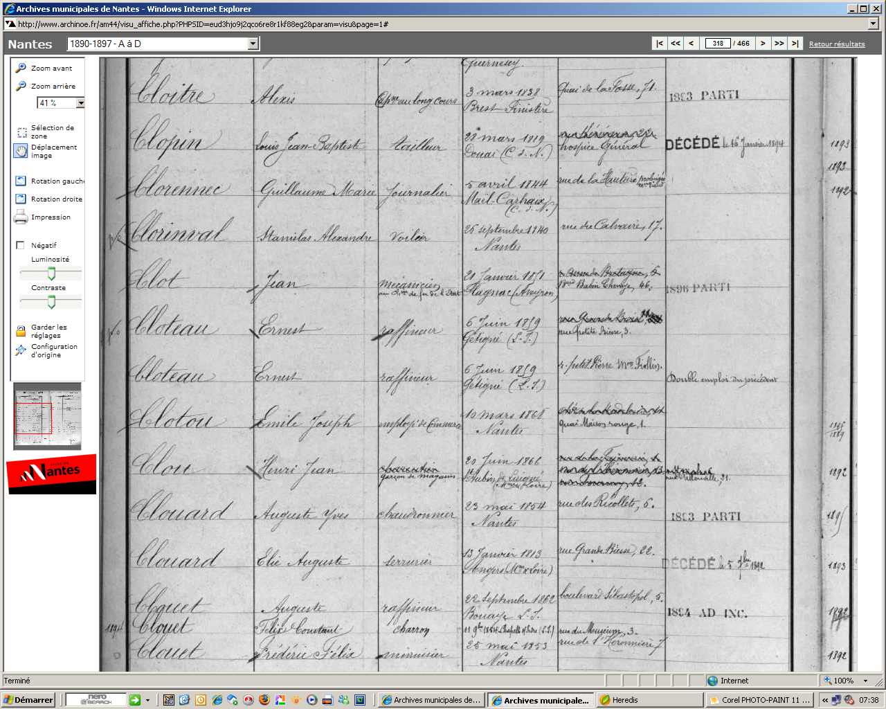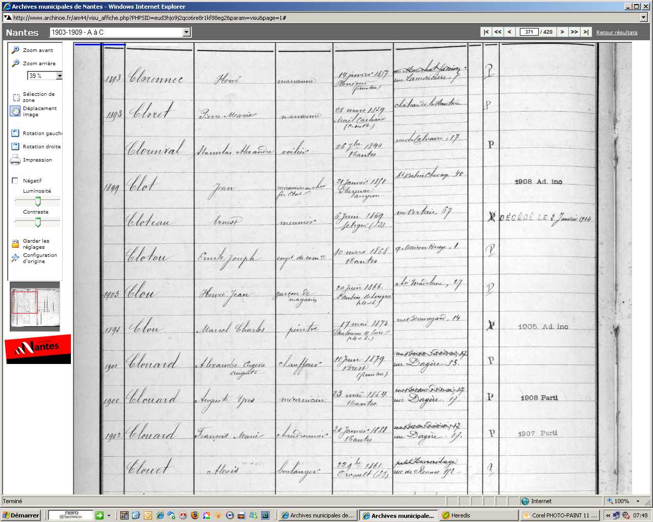 Baptême : calculée 1901 à Nantes 44000 Inhumation : après 1er février 1929