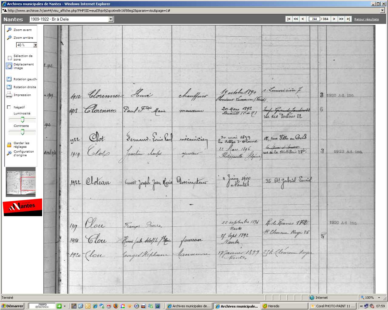 ...l'une de celles-ci pre-nait par M. Cloteau Ernest. 19 ans, demeurant au bourg de Guichen....