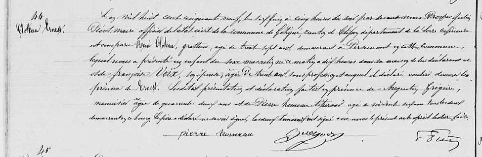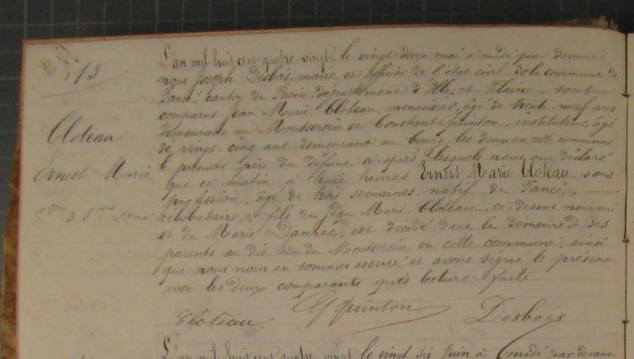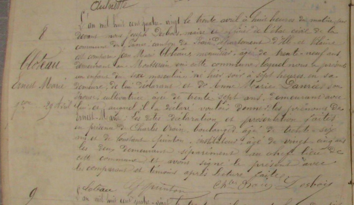 Acte de naissance et de décès au nom de CLOTEAU Ernest 1880 Pancé
