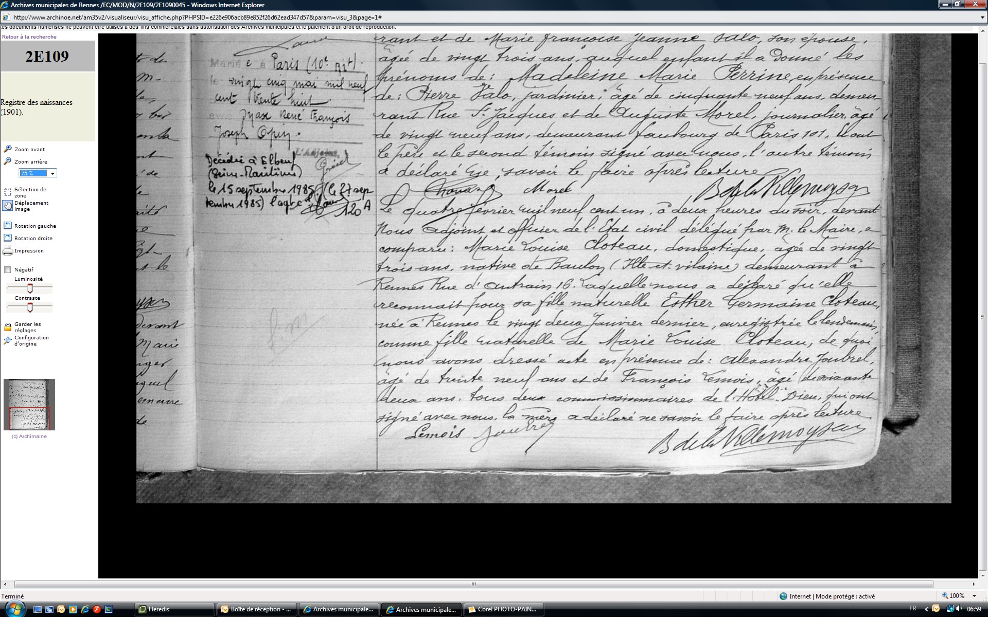 Reconnaissance : 4 février 1901 à Rennes 35000