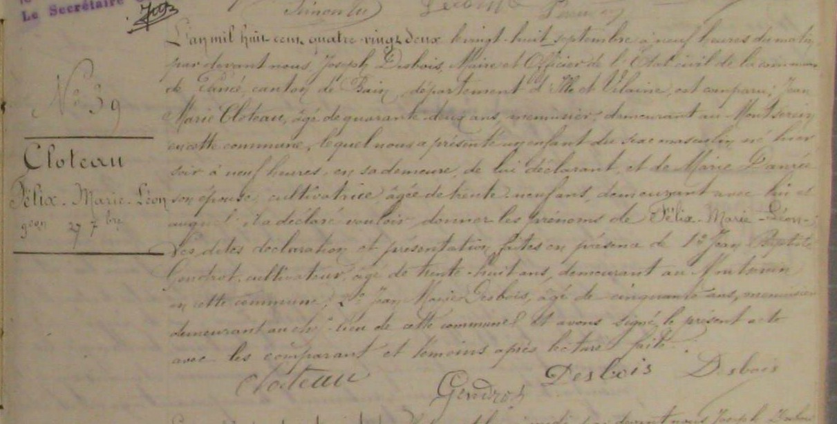 Père : CLOTEAUX Jean-Marie ( (c) 1818 - 1860 )