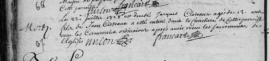Père : CLOTEAU Jean ( ~ 1676 - > 1728 )