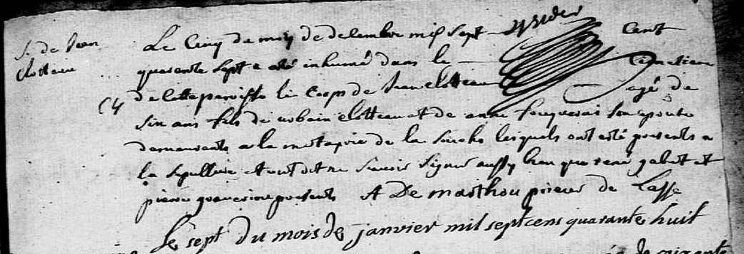 Décès : 26 février 1762 à Lassy 35580 Village de la touchette