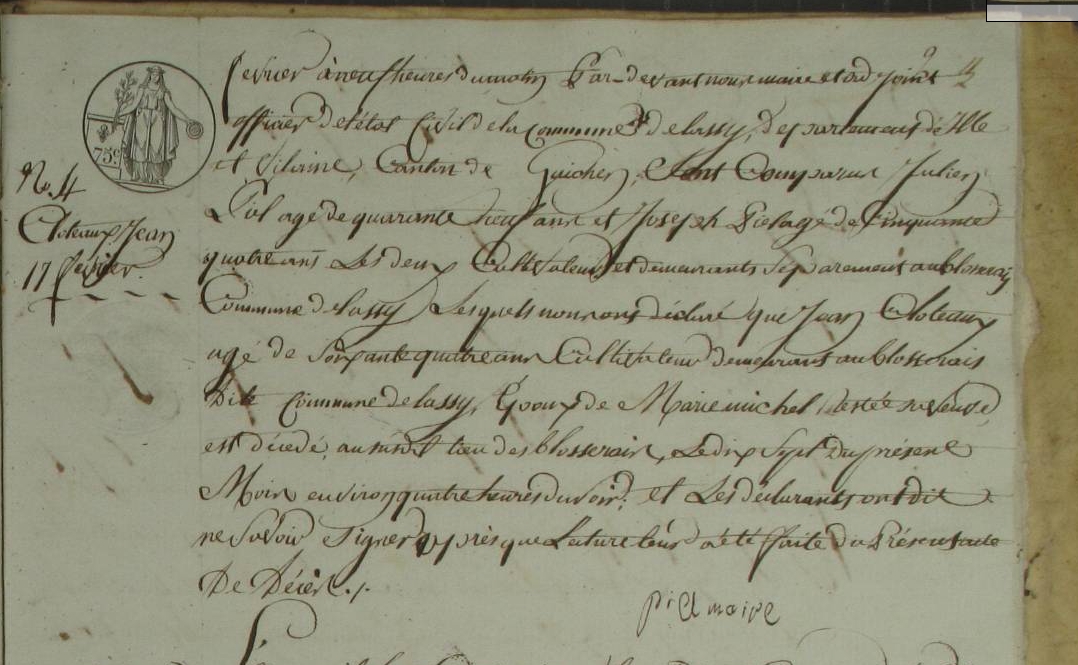 Décès : 17 février 1815 à Lassy 35580 Blosserais