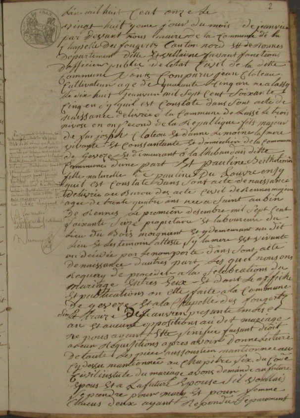 Mariage : 28 janvier 1811 à La Chapelle-Des-Fougeretz 35520