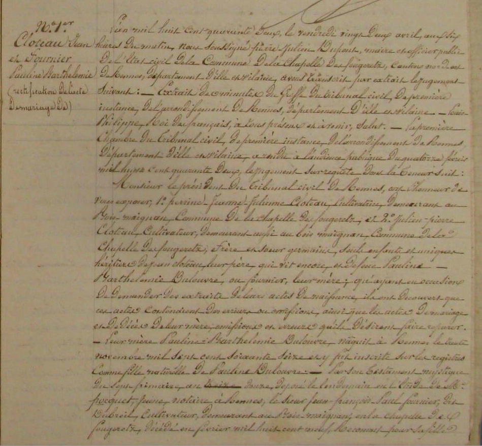 Rectification d'acte : 22 avril 1842 à La Chapelle-Des-Fougeretz 35520