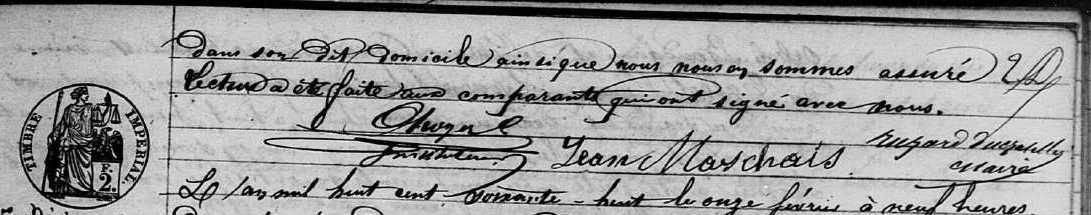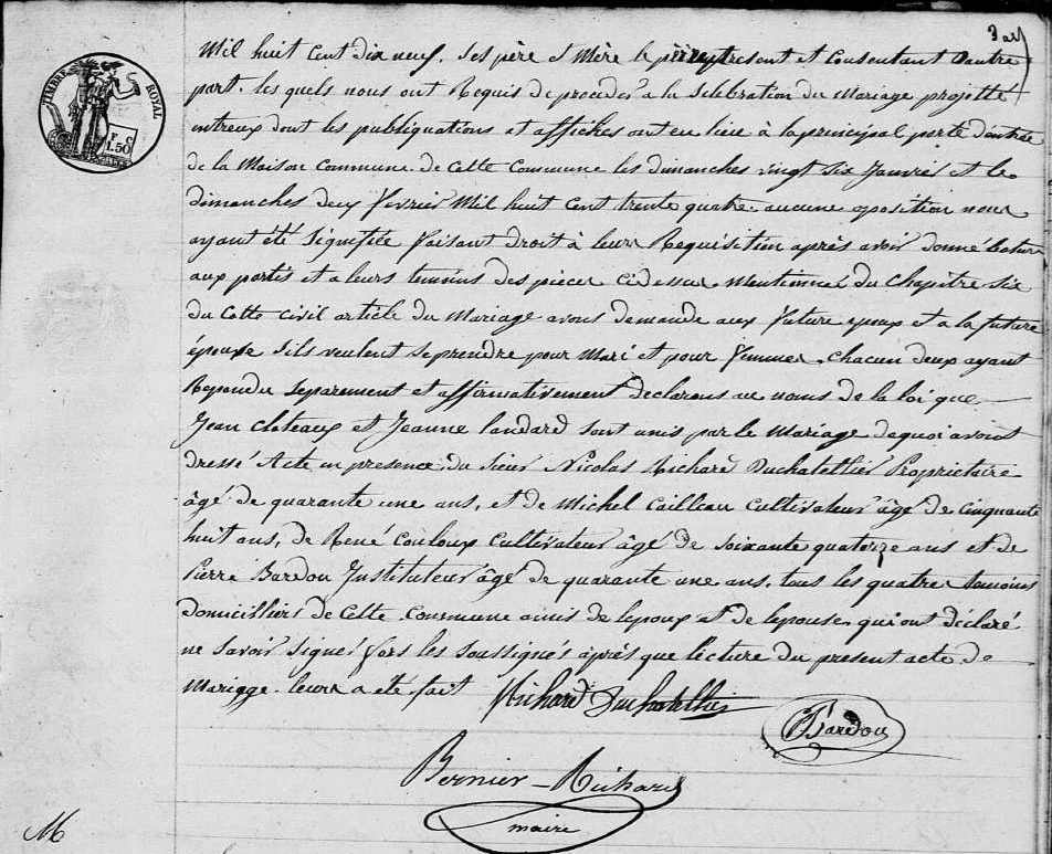 Officiant : Bellami, 1er adjoint au maireDécès : après 1825