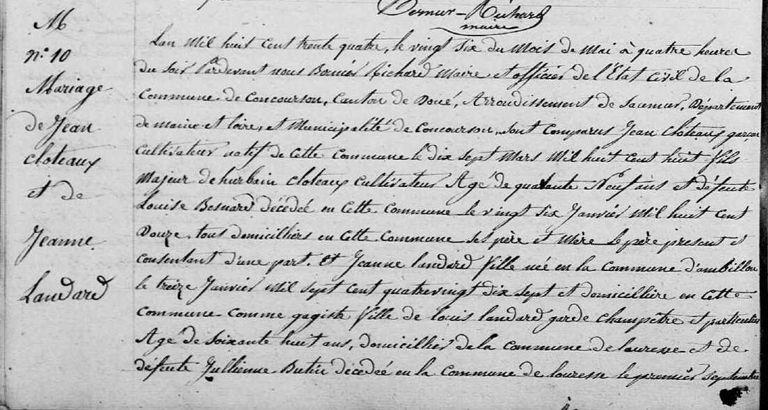 Mariage : 26 mai 1834 à Concourson-Sur-Layon 49700