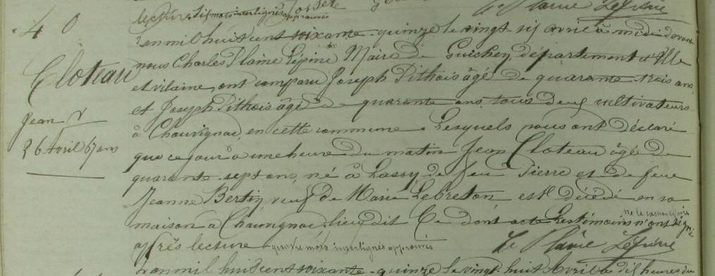 Présents : CLOTEAUX Jean, 63 ans, laboureur, Bois Louet