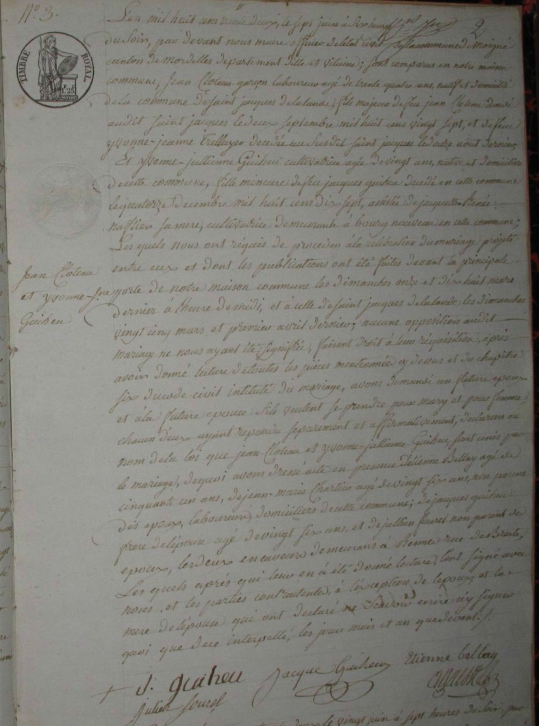Naissance : 14 juin 1769 à Guichen 35580 Goulochère