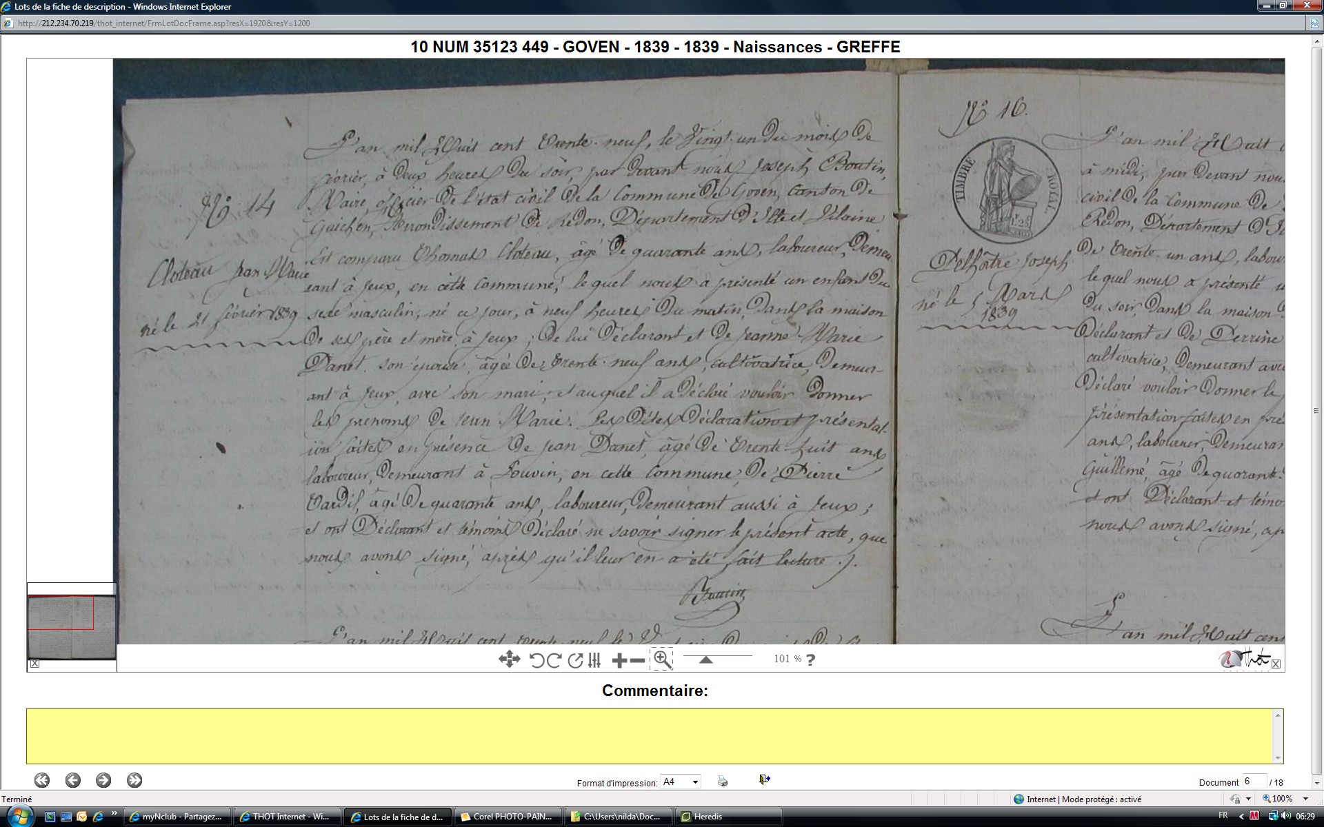 Naissance : calculée 1814 Décès : après 1846 à Goven 35580