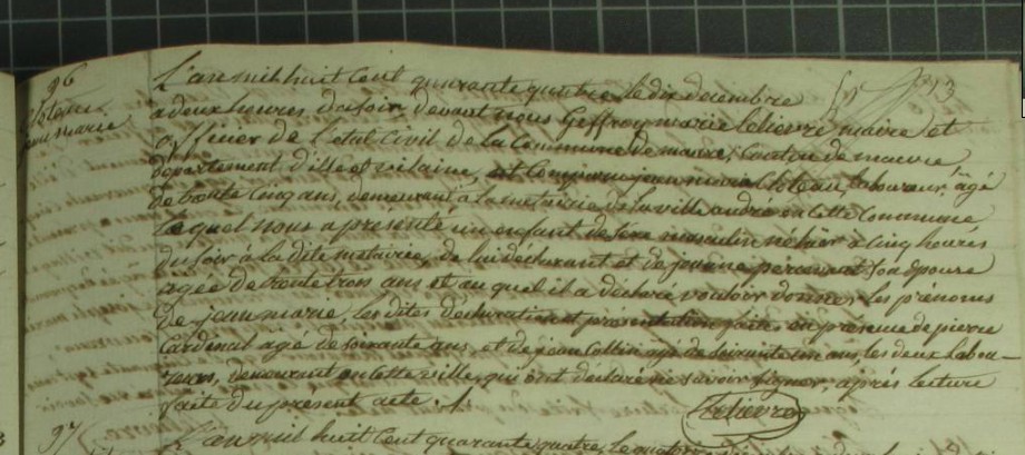 Décès : 14 décembre 1847 à Pléchâtel 35470 Saint Saturnin